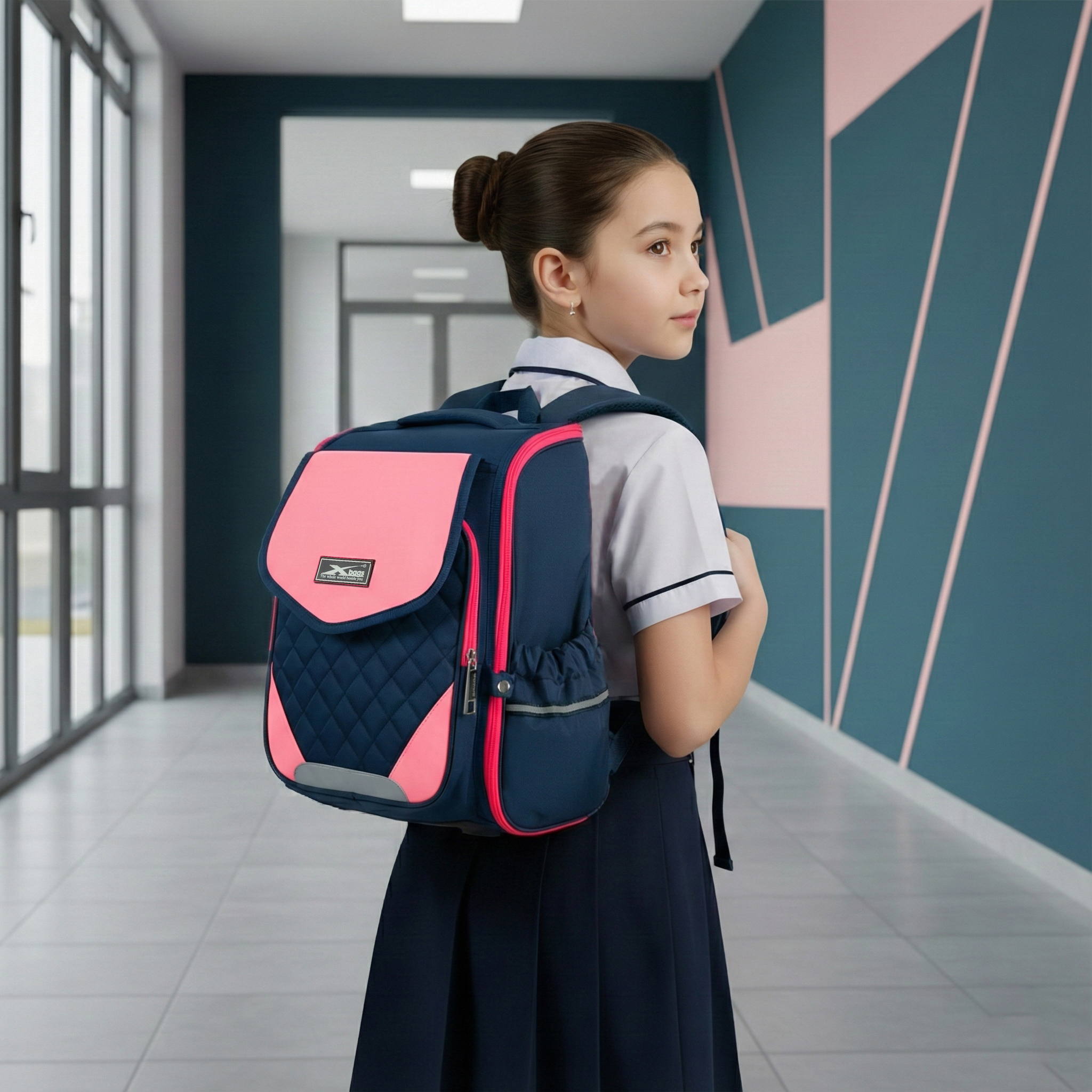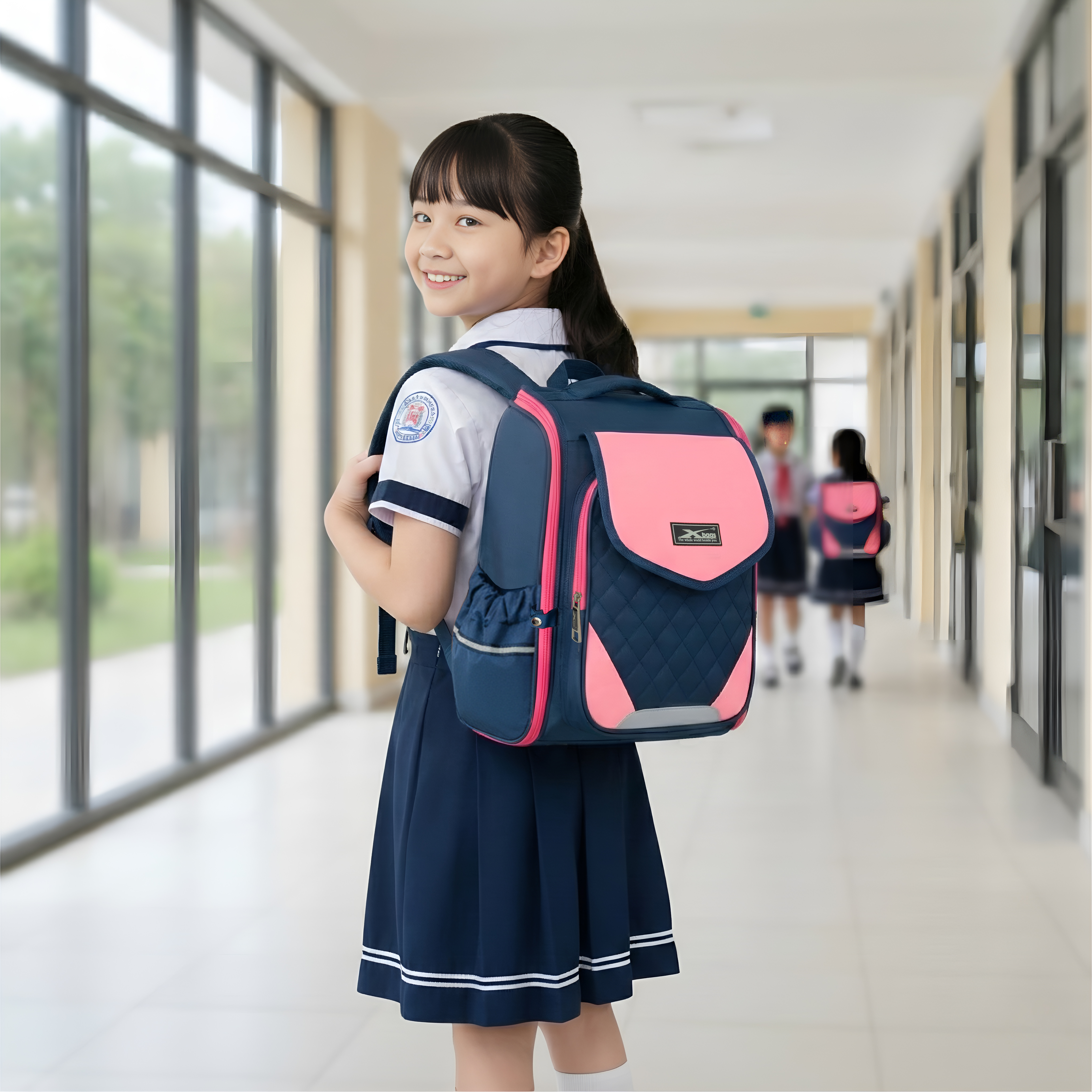 Các bé gái sẽ thích thú ngay từ cái nhìn đầu tiên với tông màu hồng phối xanh đậm tạo nên chiếc ba lô thể hiện sự ngọt ngào, trong sáng, tăng thêm vẻ đẹp hồn nhiên trong từng bước chân bé đến trường