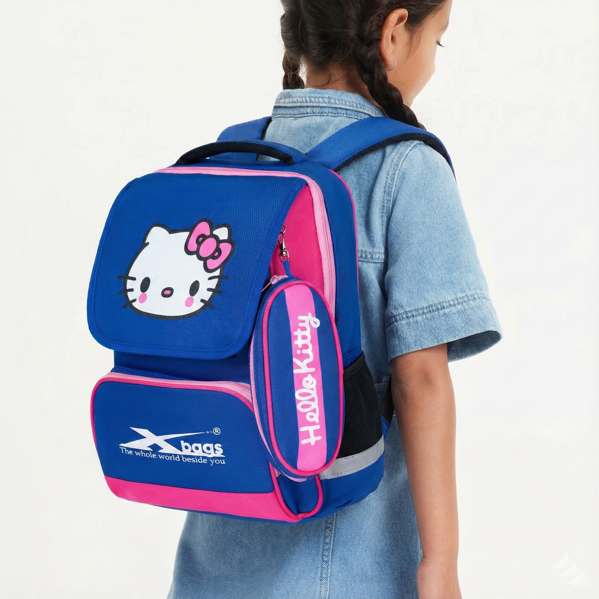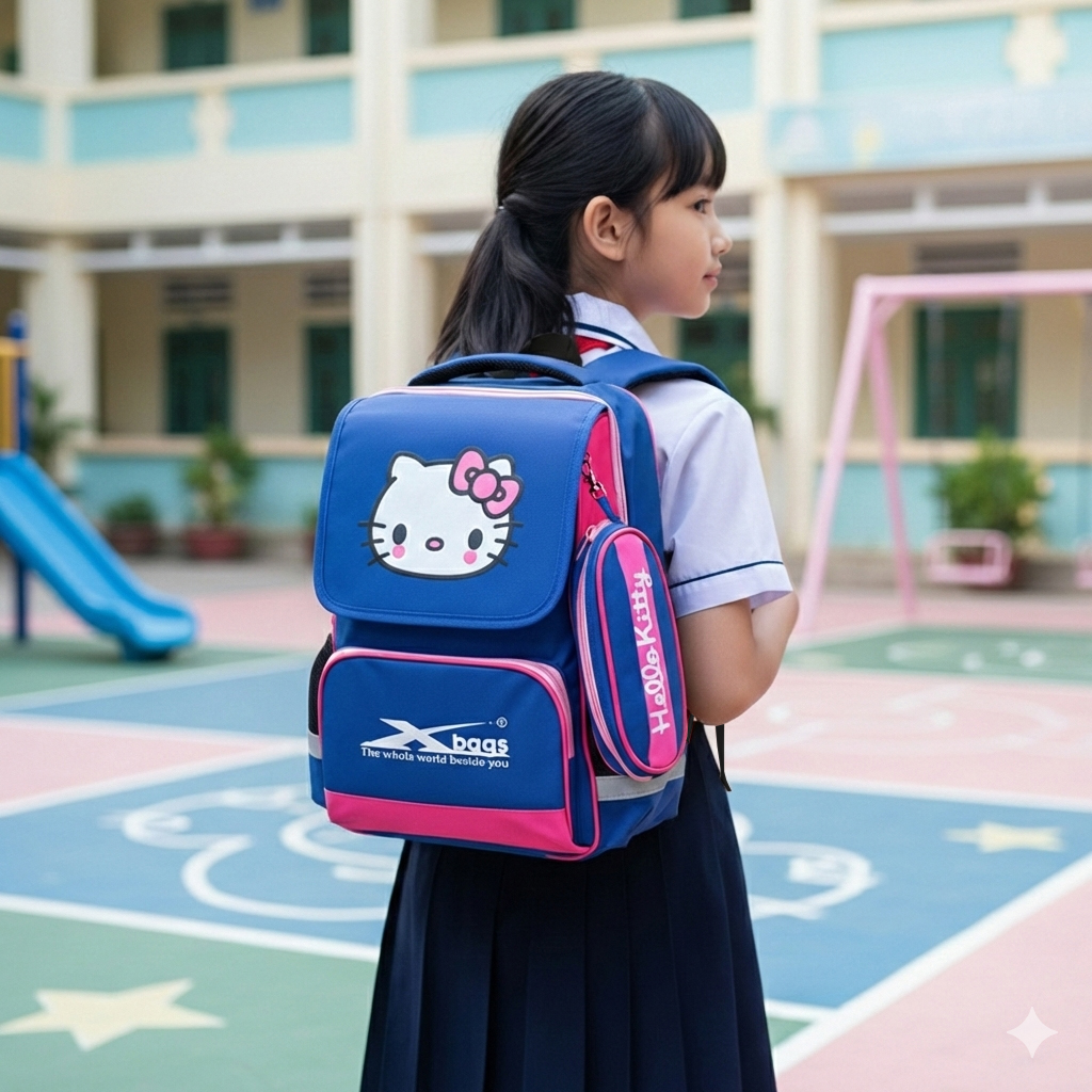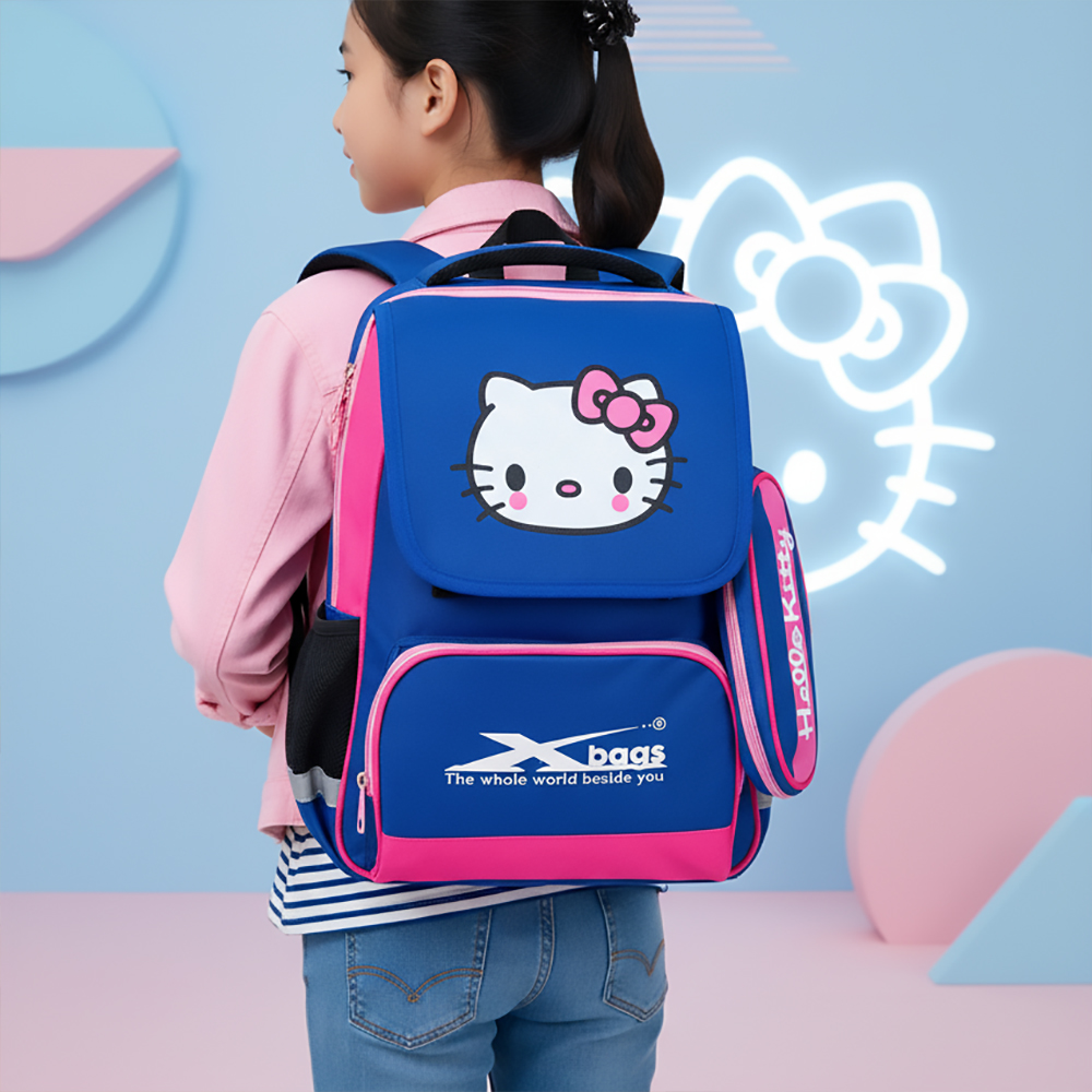 Ba lô tiểu học nữ sở hữu họa tiết chú mèo hello kitty ngộ nghĩnh, được in ấn sắc nét cùng với tone màu hồng -xanh sẽ là người bạn xinh xắn và luôn đồng hành cùng các bé giúp bé luôn tỏa sáng, hăng hái trong học tập.