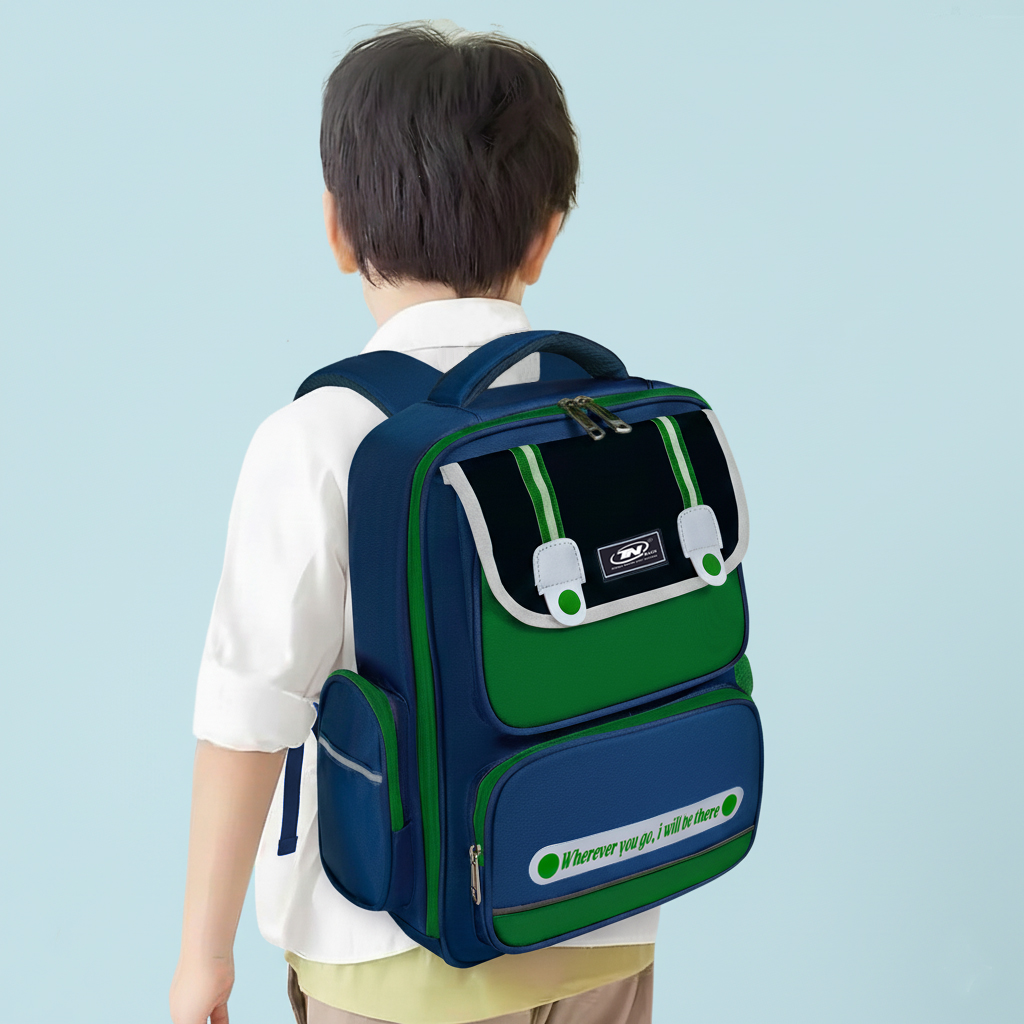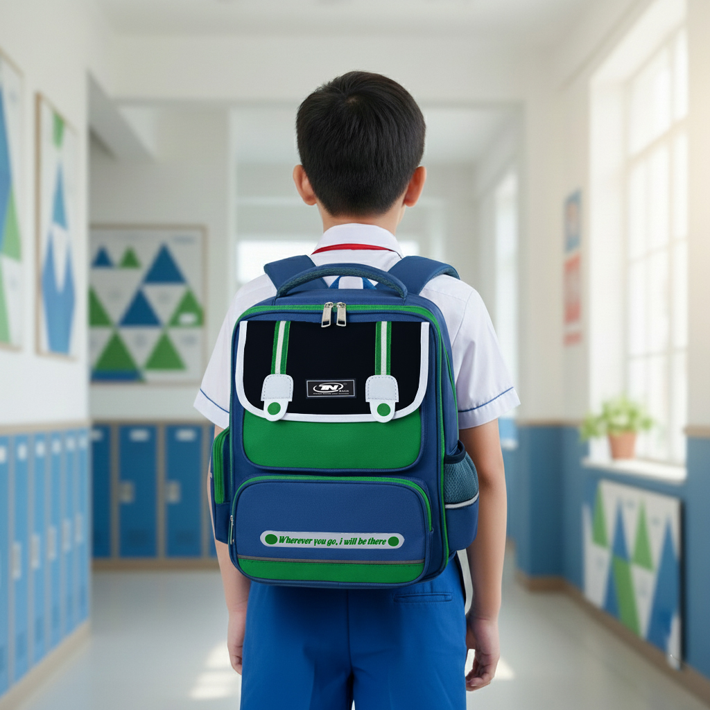Tổng thể là hai gam màu xanh kết hợp lại tạo nên sự mát mẻ, thu hút ánh nhìn của nhiều người. Màu xanh là gam màu dễ phối đồ cũng như là phù hợp cho cả bé trai lẫn bé gái khi đeo tới trường.Gam màu trung tính nên rất được các mẹ yêu thích.