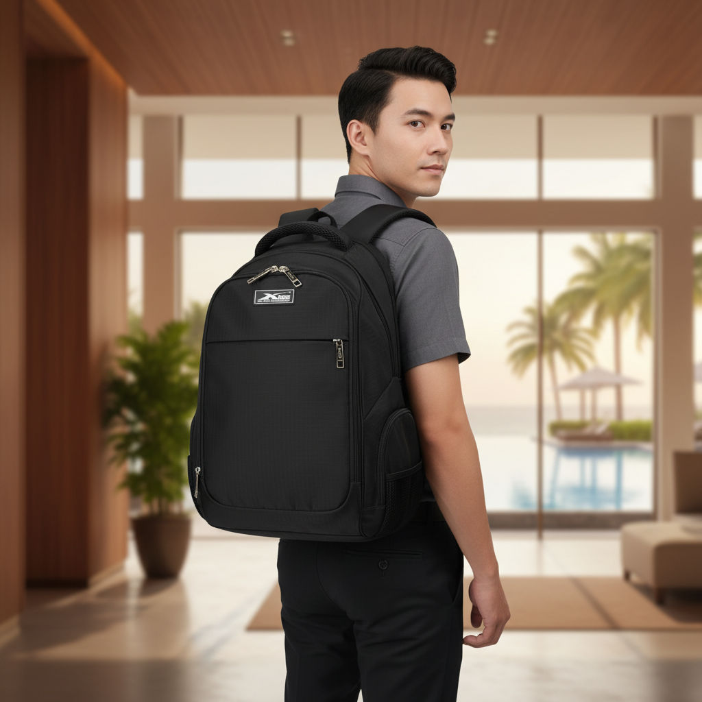 Đặc điểm nổi bật của balo du lịch Xbags Travel đen.
