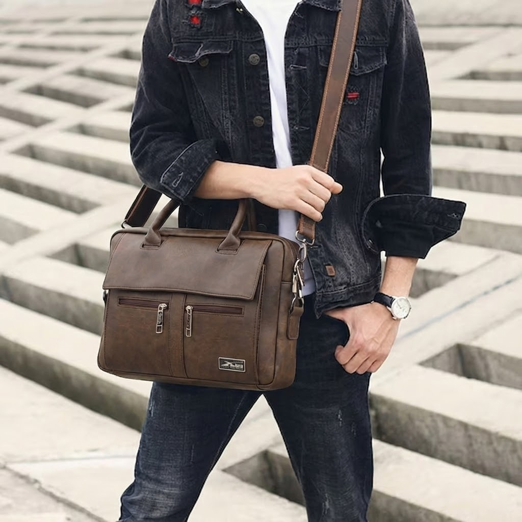 - Cặp có cả dây đeo và quai xách tích hợp cho chàng nhiều phong cách khác nhau,ngoài ra dây đeo rất tiện lợi có thể thu ngắn hay dài ra phù hợp và cân đối với chàng